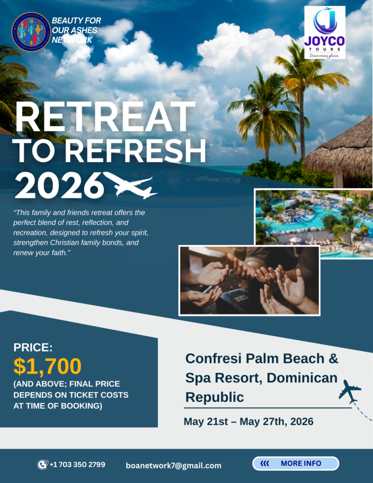 Click the link below to join us for our 2026 Retreat to Refresh. Fill out the form and send it via email to boanetwork7@gmail.com